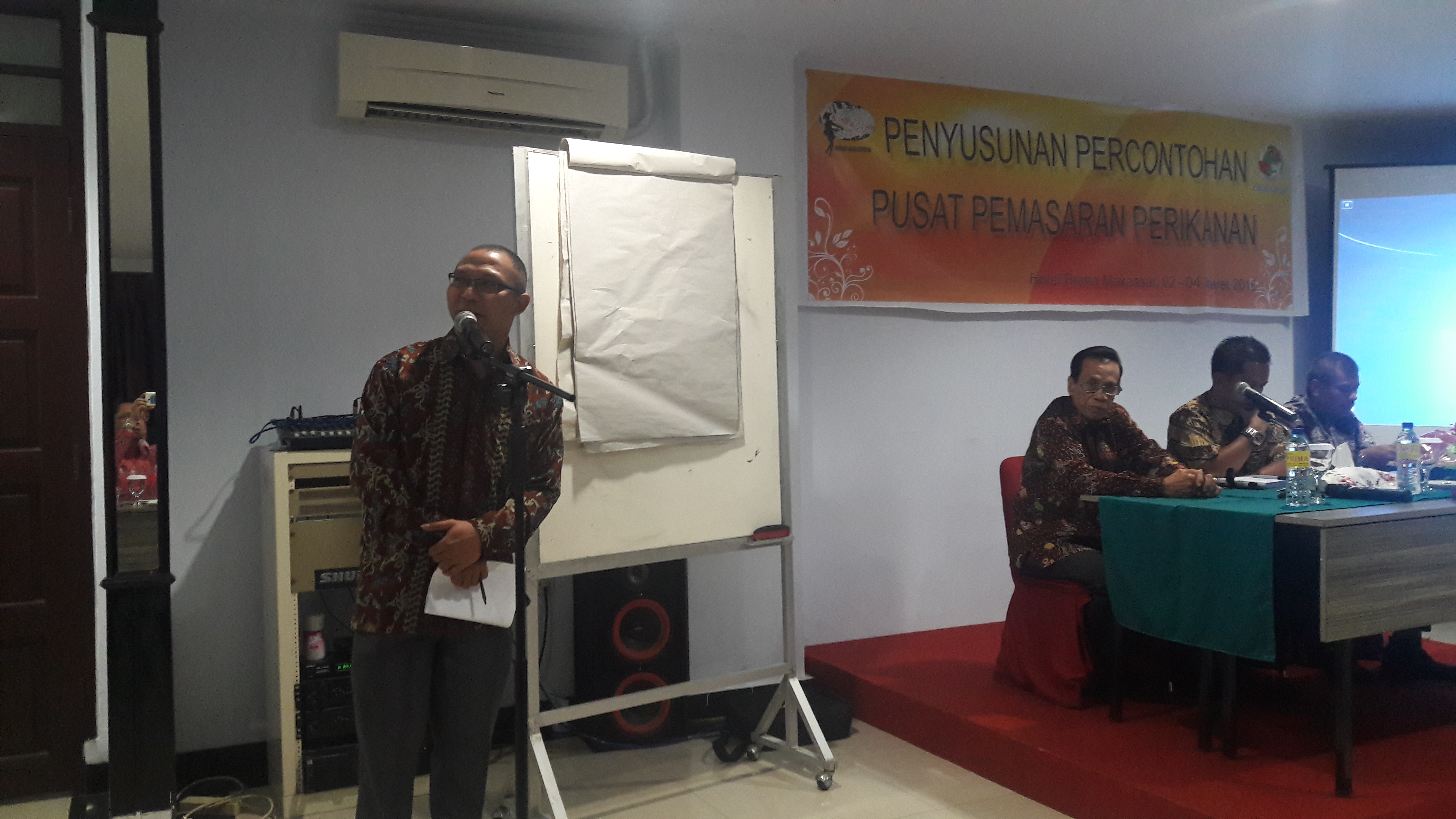 Ir. Bachrianto Bakhtiar, MSi akademisi Unhas, memaparkan tentang konsep membangun pusat pemasaran perikanan.