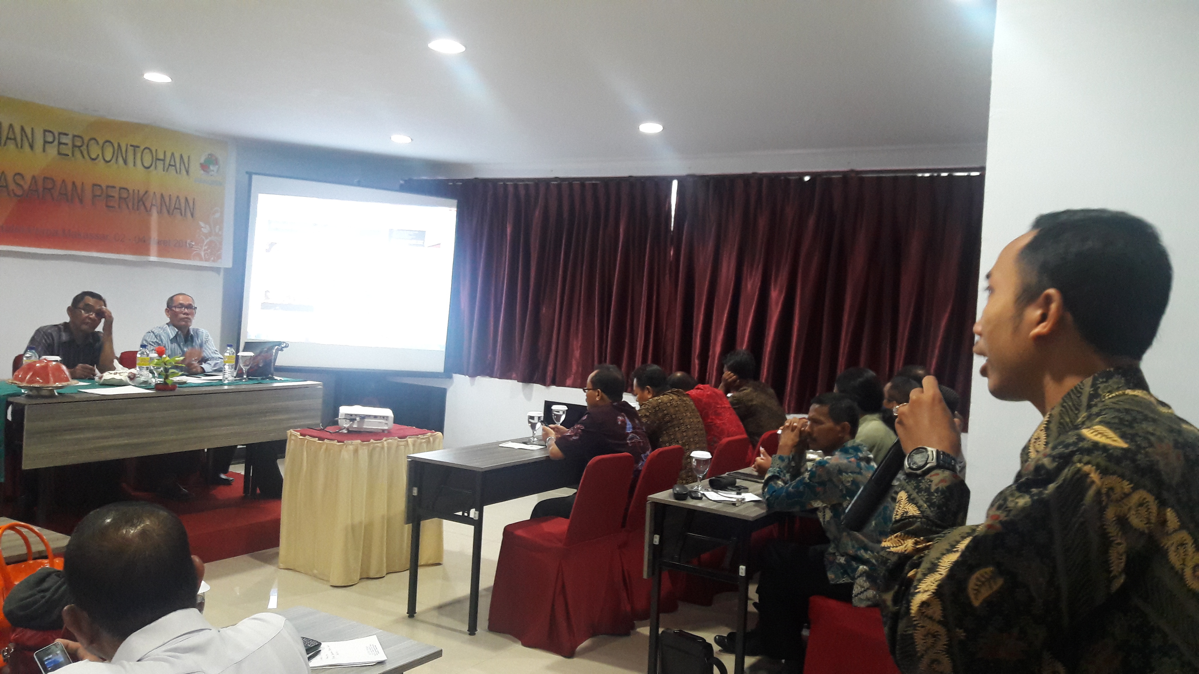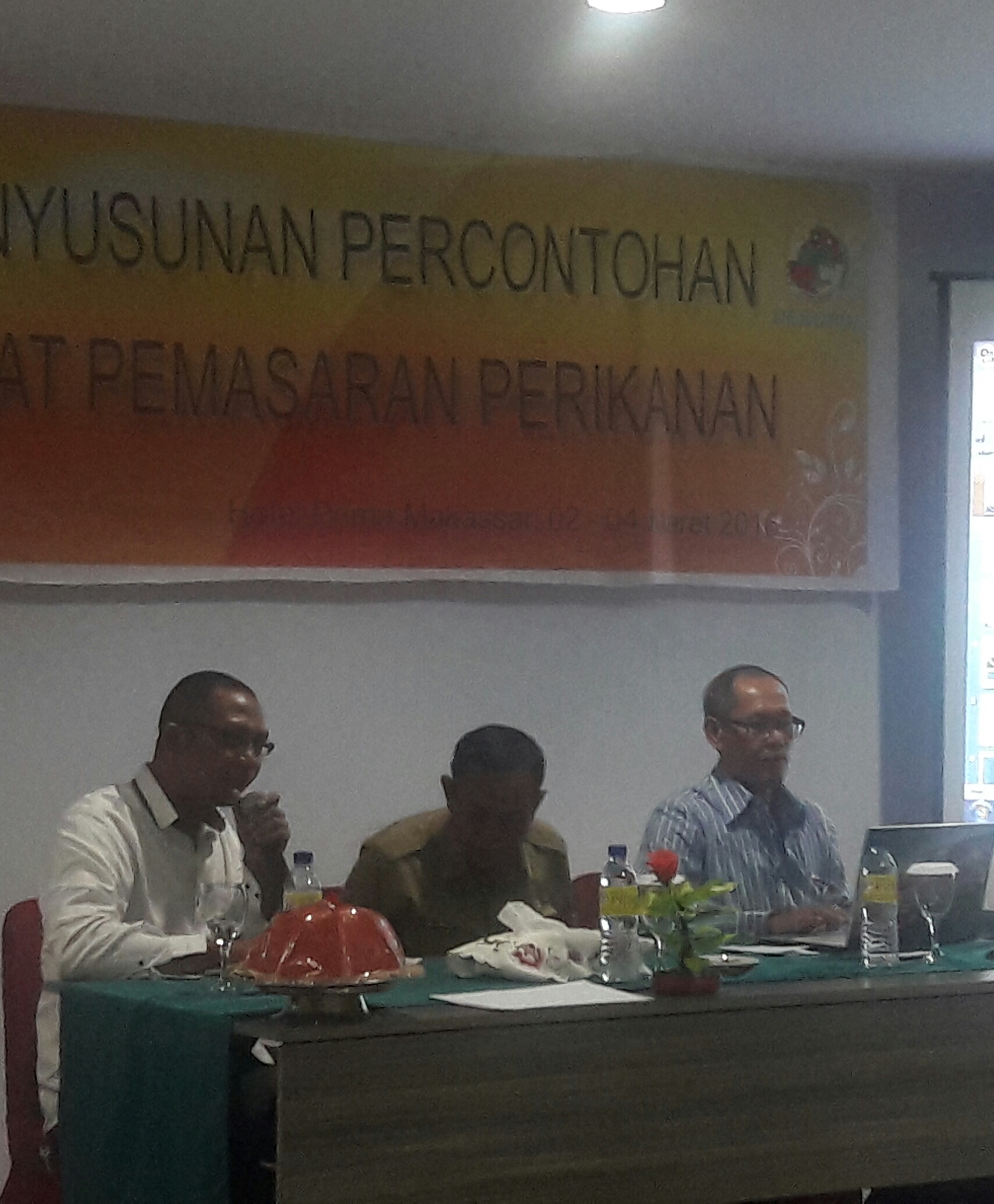 Abdul Wahab dari Dekopin pusat menjelaskan tentang latar belakang konsep pembentukan pasar percontohan. Hadir pula dari Dinas Perikanan Sulawesi Selatan, yang menjelaskan tentang kebijakan dan strategi pemerintah dalam memberdayakan petani nelayan dalam bidang pemasaran.