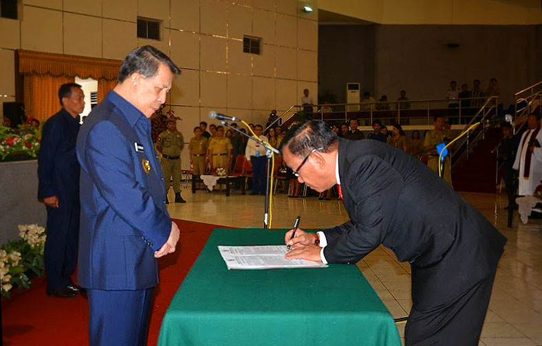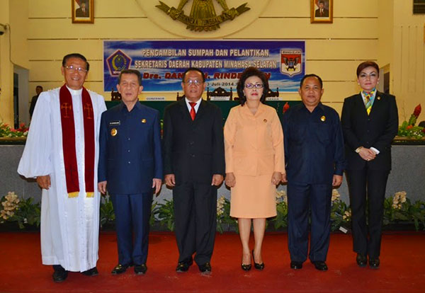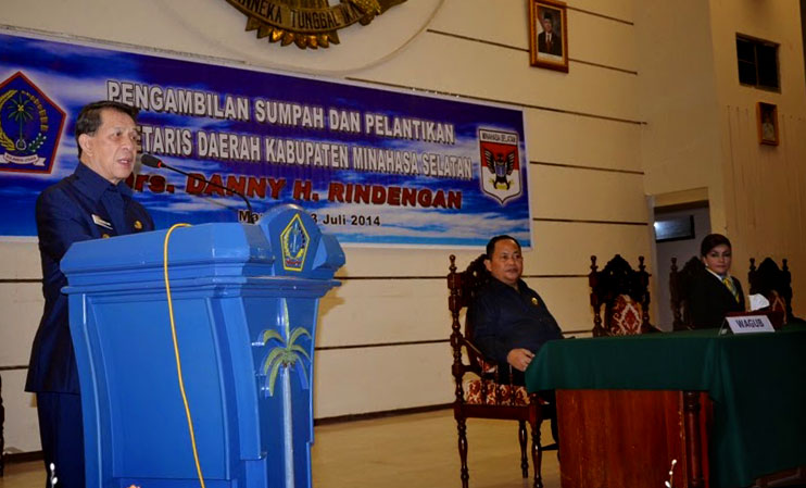 Gallery foto Pelantikan Sekda Definitif Kabupaten Minahasa Selatan Drs. Danny Rindengan, Rabu 23 Juli 2014 di ruang Mapalus kantor Gubernur Sulawesi Utara (baca: Rindengan Sekda Definitif, Gubernur Harap Minsel Raih WTP). Foto: Humas Prov Sulut