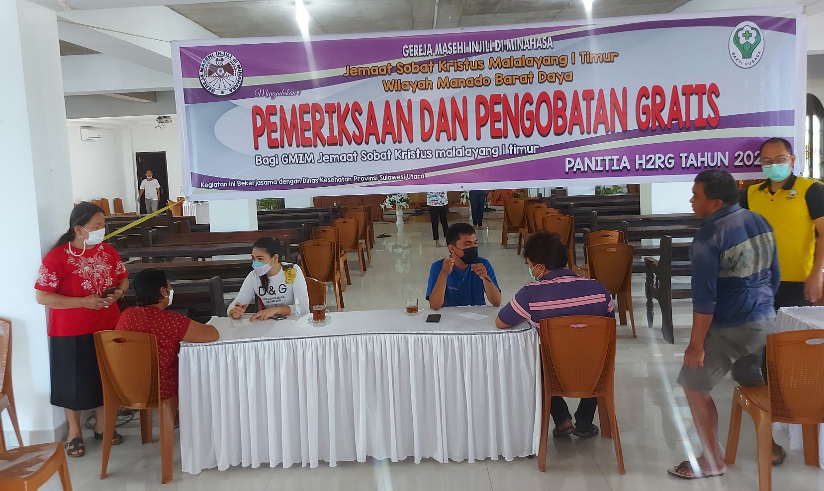 Pelayanan kesehatan ini dilaksanakan oleh panitia HRG jemaat dan Komisi PKB serta komisi kesehatan juga didukung oleh Dinas Kesehatan Provinsi Sulawesi Utara.