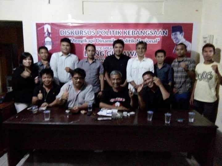 Diskursus yang mengambil tema “Menyikapi Dinamika Politik Nasional” ini berlangsung hingga larut malam, Bung Gunawan saat menyampaikan pendapat tentang dinamika politik bangsa saat ini ialah Pak Jokowi beserta instrumen pemerintahannya harus tegas menjalankan institusi Negara, Pancasila, UUD 1945 sifatnya final. Kita harus bergerak maju tanpa meninggalkan sejarah berdirinya bangsa ini, sejarah BPUPK hingga PPKI sudah melahirkan konsensus Nasional. Jika hari ini ada sekelompok gerombolan politik yang berbalut agama ingin mengotak-atik kebhinekaan bangsa itu harus ditindak cepat dan tegas sesuai prosedur hukum yang berlaku.
