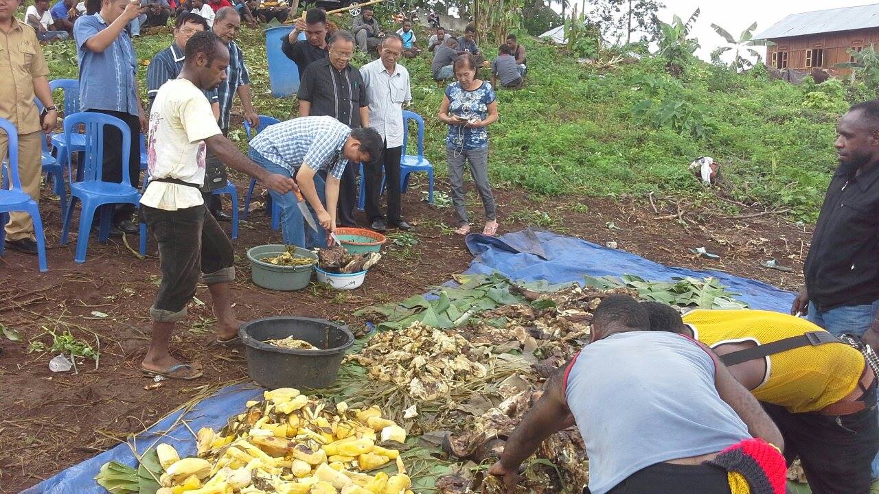 Pak Vicky so beri bukti, bukan cuma janji,” beber Suebu dan Kogoya penuh semangat. Sementara itu, dari pantauan yang ada dalam hajatan Bakar Batu tersebut. Warga disekitar kompleks perkebunan, ikut juga menyaksikan sekaligus menikmati sajian makanan yang tergolong jarang ditemui apalagi ditambah dengan suasana yang cukup bersahabat.