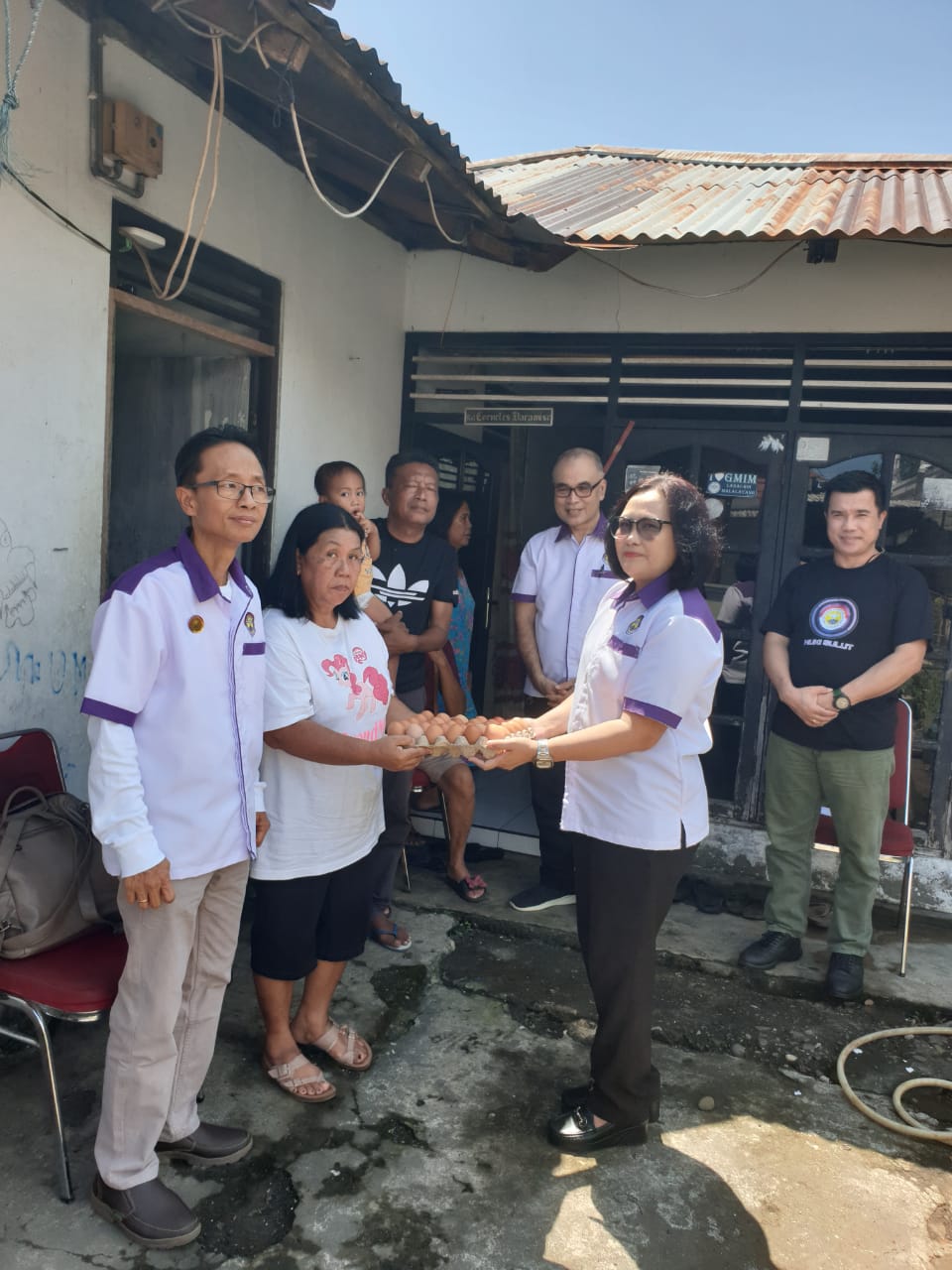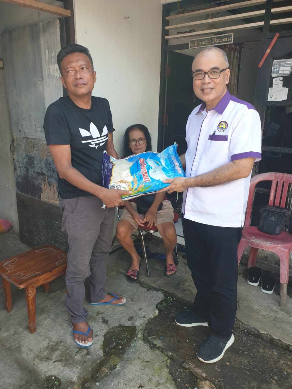 Didampingi Bendahara DPW MUKI SULUT Bapak Ivanry Matu SE, ME, Wakil bendahara II Bpk Feri Rambitan SE, Ketua Biro Aspirasi & pengabdian masyarakat Dr. Cynthia Wuisang ST dan Charles Nayoan S.S, dimana secara bergantian menyerahkan bantuan berupa beras, telur dan dan uang tunai kepada 3 keluarga pengungsi yang selama ini hanya menumpang/nginap pada saudaranya.