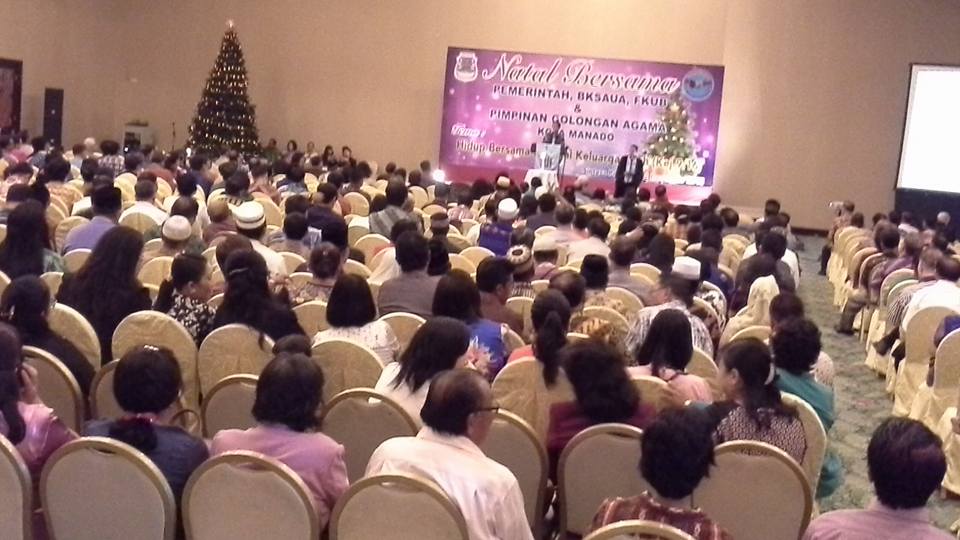 SEPUTAR SULUT. Manado – Pimpinan Golongan Agama Baik BKSAUA (Badan Kerja Sama Antar Umat Agama) dan FKUB ( Forum Kerjasama Umat Beragama) se Kota Manado menggelar ibadah natal bersama Pemerintah Kota Manado Rabu (02/12) siang tadi di Hotel Sintesa Peninsula, dan Walikota DR G.S Vicky Lumentut didampingi ketua tim penggerak PKK Kota Manado Ny Prof Paula Runtuwene menyampaikan unek-uneknya seputar keberhasilan maupun pekerjaan yang dirasakan belum tercapai hingga akan berakhirnya masa kepemimpinan dirinya dan wakil walikota pada 8 Desember mendatang. “Kegiatan Natal bersama ini, mungkin pertemuan yang terakhir saya dan wakil walikota ditengah Pimpinan Golongan Agama se Kota Manado karena pekan depan sudah harus melepaskan jabatan. Dan besoknya akan berkompetisi sehat di moment Pilkada 9 Desember, dan itu perlu mendapat doa dan restu para Hamba Tuhan dan masyarakat yang ada. Selaku pribadi, saya meminta maaf atas keterbatasan jika masih ada pekerjaan yang belum kami selesaikan hingga akan mengakhiri tugas pelayanan. Itu semua karena saya hanya manusia biasa penuh kekurangan, dan saya memohon bukakan pintu maaf. Sebagai pemimpin umat, saya sangat senang adanya partisipasi dan dukungan Doa serta pelayanan para Hamba Tuhan kepada wargaku di Manado sehingga Kota Manado bisa terus diberkati lewat kehidupan yang rukun dan damai. Banyak terima kasih atas semua masukan, baik itu pujian dan koreksi. Ada tiga hal yang jadi beban kami saat mengawal Kota Manado usai dilantik tahun 2010 lalu, mulai dari penilaian D yakni jelek pihak Kementrian PAN-RB (Pendayahgunaan Aparatur Negara-Reformasi Birokrasi) atas kinerja birokrasi, dan opini Disclamer dari pihak BPK-RI, serta hingga masalah penanggulangan bencana alam yang sempat melanda Kota Manado Januari 2014 lalu. Berkat topangan Doa Hamba Tuhan ini, sehingga kami harus melakukan perubahan secara bertahap dan boleh bersyukur itu terlewati dan berhasil meraih prestasi seperti penilaian B dari Menpan, opini WTP dari pihak BPK hingga terealisasinya penyaluran bantuan bencana Rp 213 Miliar dari pemerintah pusat untuk membantu pembangunan dan perbaikan ribuan rumah warga korban bencana banjir bandang dan tanah longsor 15 Januari 2014. Untuk itu diakhir kepemimpinan kami berdua, saya mau mengajak para Pimpinan Golongan Agama se Kota Manado. Untuk bisa terus memberi pencerahan dan pelayanan iman ke masing-masing jemaat, agar disaat menyongsong Hari Natal 2015 dan Tahun Baru 2016. Serta pesta demokrasi Pilkada serentak 9 Desember pekan depan, untuk menyambutnya penuh sukacita. Mari kita jaga terus kerukunan dan kedamaian diantara warga masyarakat, sehingga terwujud Pilkada yang lancar dan aman. Serta mendatangkan berkat damai sejahtera, saat menyambut Hari Kelahiran Yesus Kristus dan Tahun Baru 2016,” ajak Walikota GSVL tersenyum. Ibadah Pra Natal Ini Sendiri Dipimpin Sekum BPS GMIM Pdt DR Handry Runtuwene STh, dan dihadiri ribuan tokoh agama se Kota Manado. (PD)